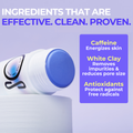 Ingredients: Aqua (Water), Kaolin, Propylene Glycol, Glycerin, Sodium Stearate, CI 77007 (Ultramarines), Gellan Gum, Parfum (Fragrance), Hydroxypropyl Guar, Arginine, Limonene, Linalool, Sodium Ascorbyl Phosphate, Caffeine, Paullinia Cupana Seed Extract, Panax Ginseng Root Extract.