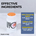 Glycerin, Sodium Cocoyl Isethionate, Propanediol, Aqua (Water), Cetearyl Alcohol, Sodium Lauroyl Methyl Isethionate, Copernicia Cerifera Cera/ Copernicia Cerifera (Carnauba) Wax, Synthetic Wax, Sodium Methyl Cocoyl Taurate, Cocamidopropyl Betaine, Sorbitan Caprylate, Parfum (Fragrance), Limonene, Benzoic Acid, Linalool, Propylene Glycol, Caffeine, Sodium Ascorbyl Phosphate, CI 15985 (Yellow 6), CI 14700 (Red 4), Paullinia Cupana Seed Extract, CI 19140 (Yellow 5), Panax Ginseng Root Extract.